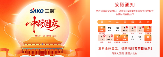 秋高氣爽,雙節(jié)同輝。值此中秋團圓與國慶歡慶之際,SAKO三科全體員工提前祝您節(jié)日快樂,闔家幸福,萬事如意!